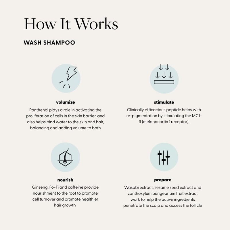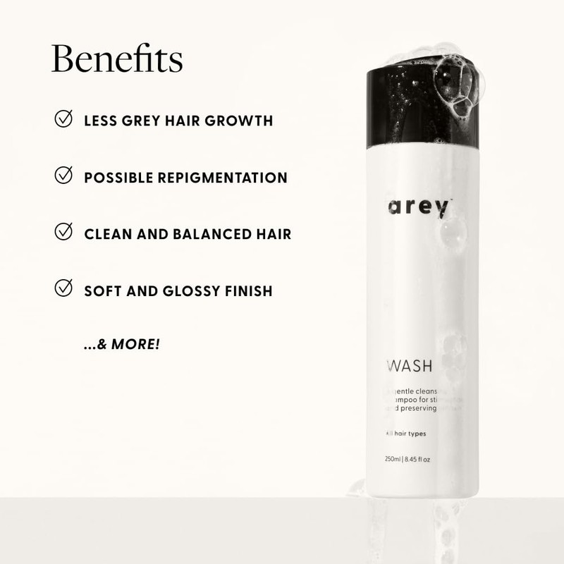 • Wash leaves the hair feeling clean, but not over-cleansed. With each use, you're better prepared to stop grey hair growth and grow healthier, more youthful hair.
