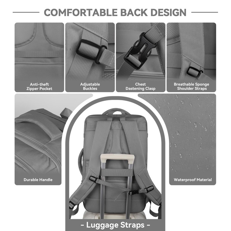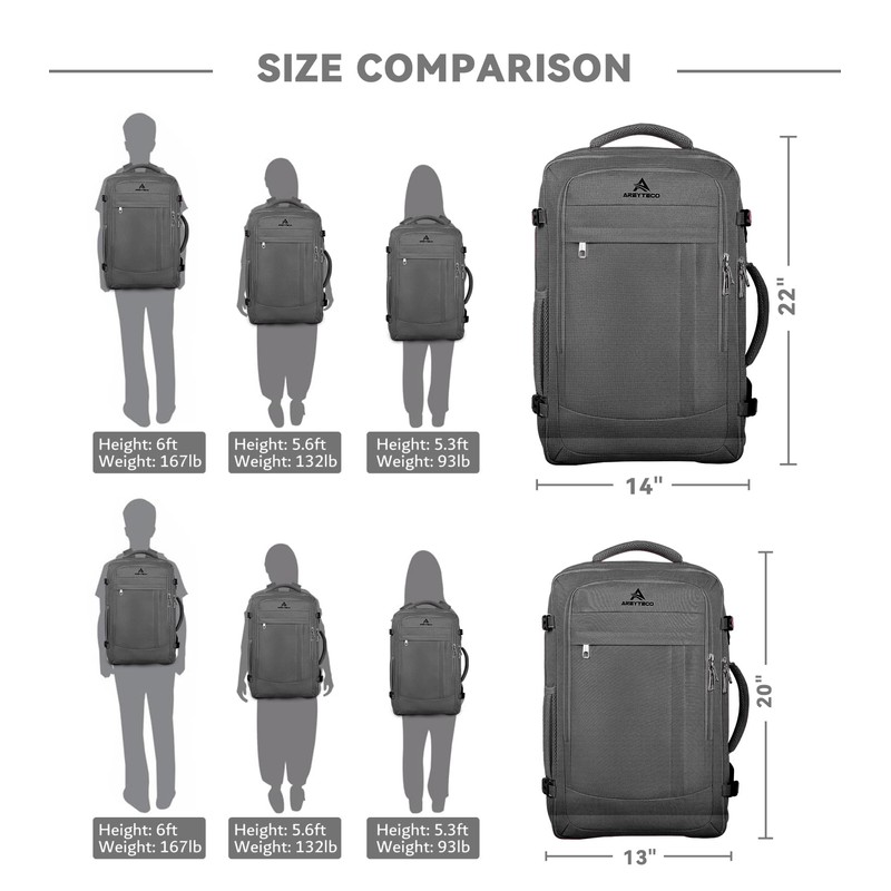 - đăExpandable & Large CapacityăThis large travel backpack is designed to be expandable, backpack for travel giving you a large capacity pack up to 40L, unzipping to get larger storage space. The carry on backpack for men women fits overhead and under seat while on state of standard carry on size, ideal for business or weekend travel, and easily carried on most flights.