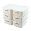 AREYZIN Plastic Storage Baskets With Lid Organizing Container Lidded Knit Storage Organizer Bins for Shelves Drawers Desktop Closet Playroom Classroom Office, White, 6 Pack