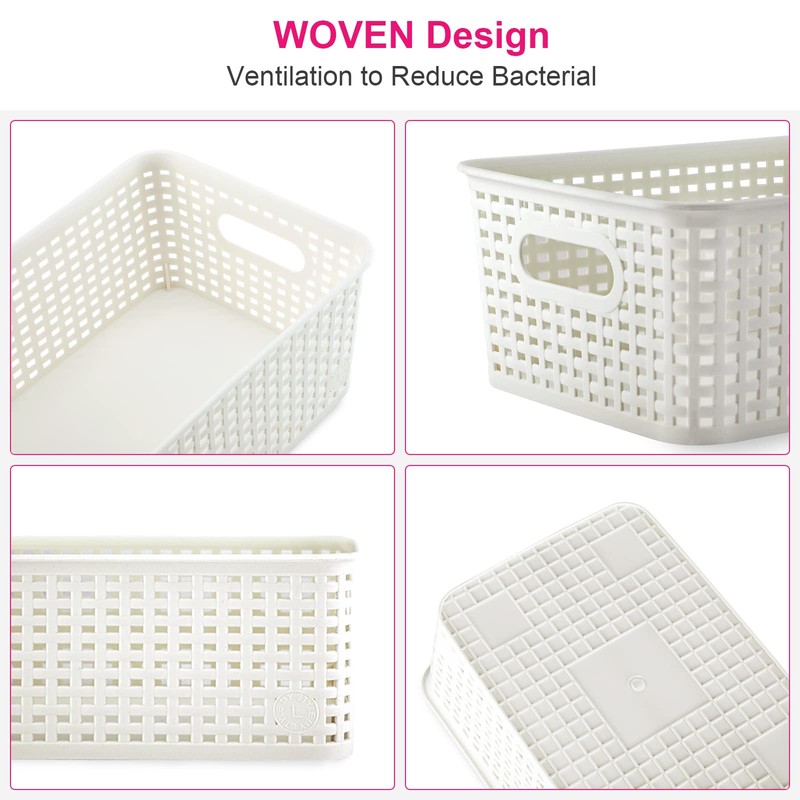 - 👍【STURDY & DURABLE】: These sturdy, long-lasting woven flat organizers and storage are made of high-quality BPA FREE material, it's one of the best long lasting using plastic baskets. Outside Dimensions:10.2L x 7.1Wx 4.1H inche
