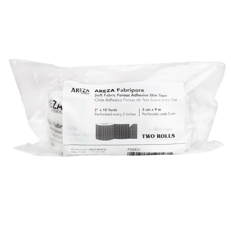 Areza Medical Surgical Tape - Porous Skin Soft Fabric Cloth Adhesive Tape - Fabripore - 2" x 10 yds. (5 cm x 9 m) - 2 Rolls per Box - FSA/HSA Approved