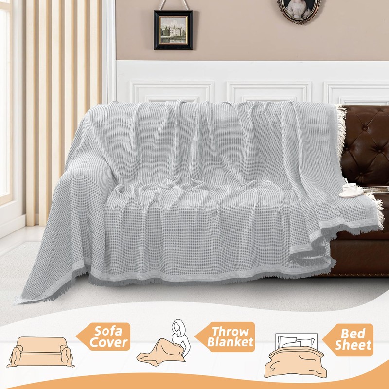 Arfntevss Sectional Couch Covers Boho L Shape Sofa Cover with Simple Tassel Soft Reversible Corner Sectional Couch Cover Waffle Woven Jacquard U Shaped Sofa Slipcovers Protector (Large, Light Gray)