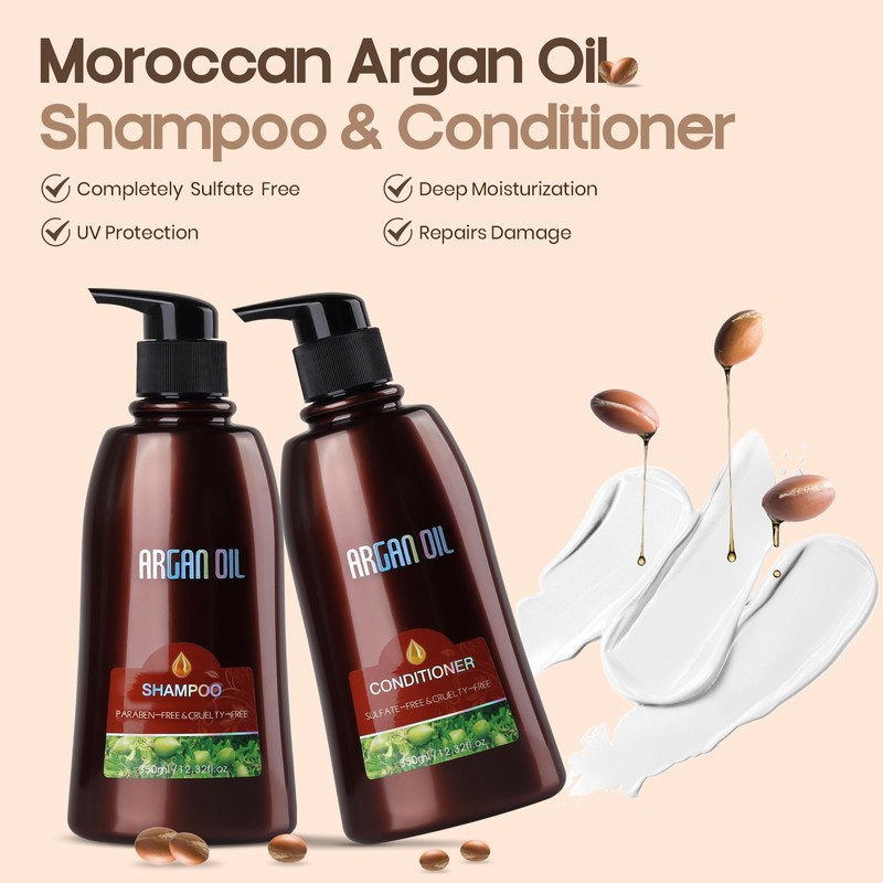 - Natural Moroccan Argan Oil: Our shampoo and conditioner set is enriched with pure Moroccan Argan oil, known for its deep moisturizing properties, helping to nourish and revitalize hair from root to tip.