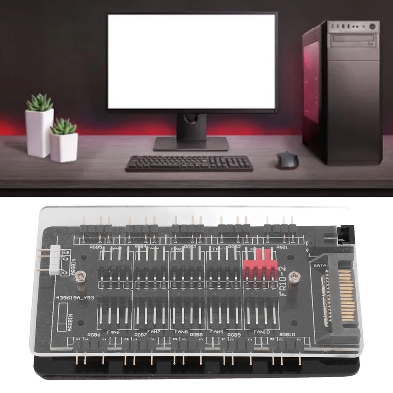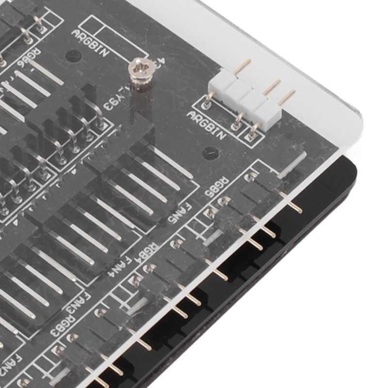 1、10 WAY: ARGB PWM 2 in 1 10 way hub with up to 10 sets of addressable RGB (5V 3pin) plugs and 3pin/4pin PWM plugs, expanding the 10 way 4pin fan and 5v 3pin ARGB connector to solve the problem of cluttered motherboard fan wiring. 2、SIMULTANEOUS EXPANSION: The 10 way 5V RGB splitter hub can expand any 5V addressable RGB product at the same time while occupying only one RGB connector on the motherboard, freeing up more ports for other devices. 3、SATA POWER SUPPLY DIRECT OUTPUT: 2 in 1 PWM ARGB case fan hub adopts SATA power supply direct output, which is more simple, more efficient and more stable. 4、MAGNETIC DESIGN: The hub is designed with super strong magnetism, which can be adsorbed on the metal surfaces of the case and can be placed at will, small and exquisite size to save more space. 5、NOTE: The light can only be turned on when the motherboard supports ARGB. The red port on the hub needs to be connected to the temperature control fan. Other ports can be connected at will. When the other ports are connected to the 3pin fan, the speed will not be synchronized and will run at full speed.