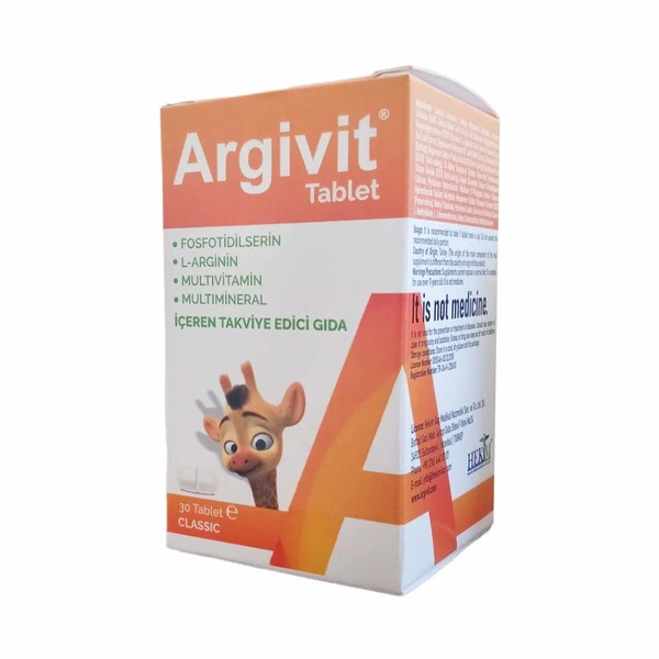 Argivit Tablet, Multivitamin Multimineral Supplement with Phosphatidylserine, L-Arginine, 30 Tablets