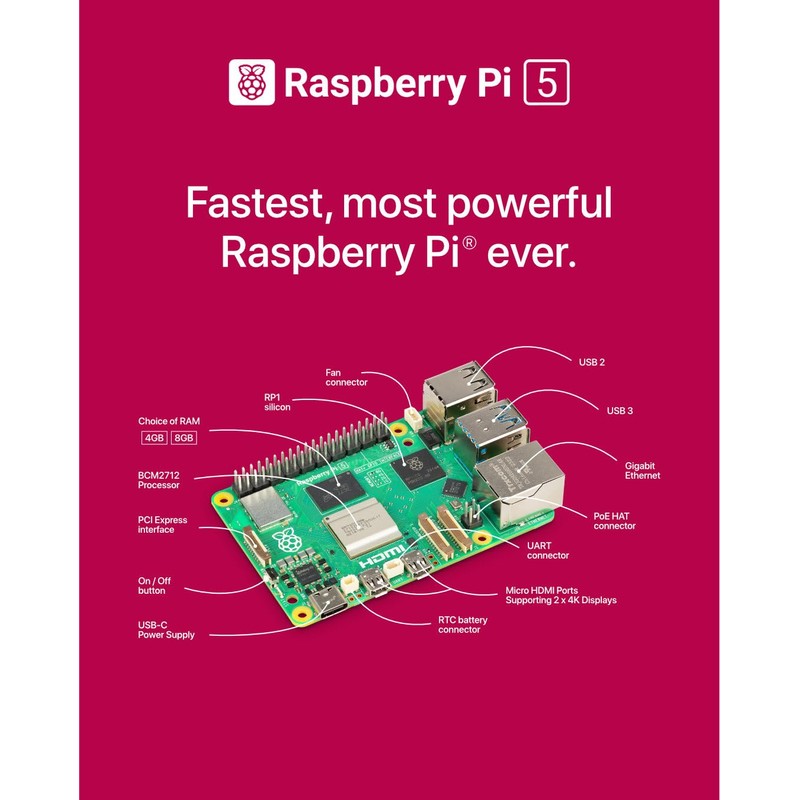 - POWERFUL RASPBERRY PI STARTER KIT - Powered by included Raspberry Pi 5 8GB board (BCM2712 2.4GHz quad-core 64-bit Arm Cortex-A76 CPU)
