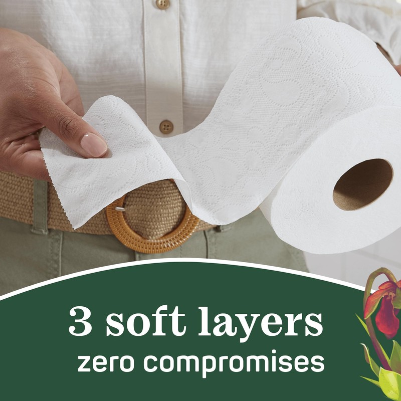 • Each super soft roll has 264 sheets of recycled, 3 ply toilet paper that is 25% thicker and 4x stronger when wet than the leading recycled brand.