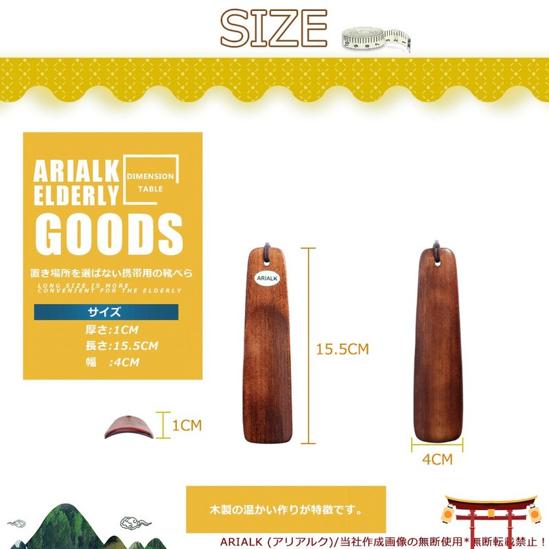 ARIALK Shoehorn Wooden Portable Shoehorn Lightweight Keychain Included, Portable, Brown, 6.1 inches (15.5 cm), Braun