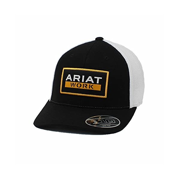 ARIAT Mens Flexfit 110 Adjustable Large Work Patch Mesh Back Black/White Hat