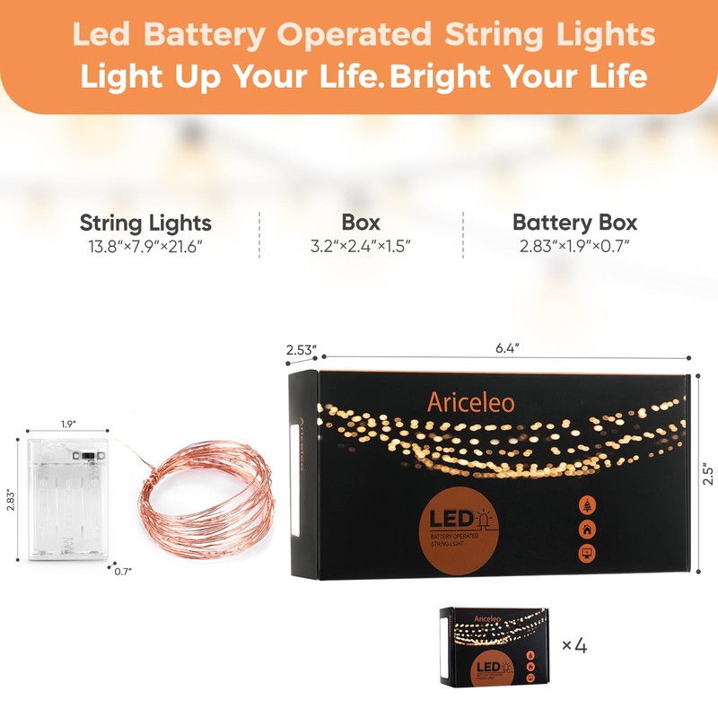 Ariceleo 4 Pack 16.4ft Battery Operated String Lights with Timer, Red with Sy...