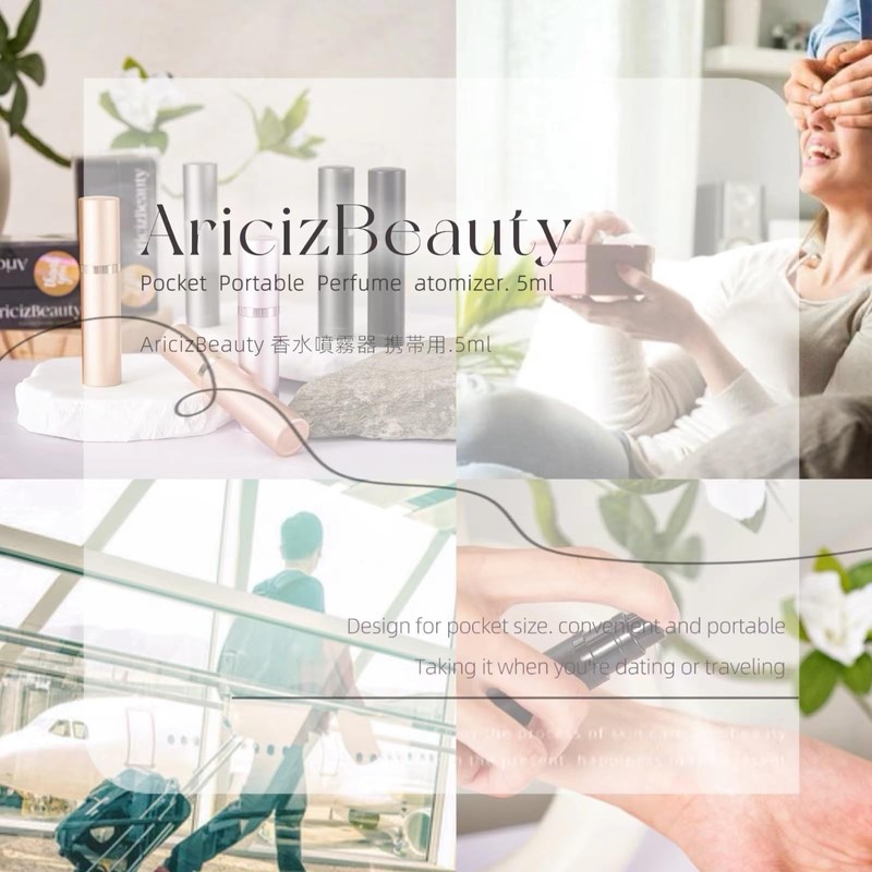 AricizBeauty Travel Refillable Perfume Fragrance Atomizer 0.17fl.oz/5ml. Cologne Pocket Recyclable Portable Sprayer Bottle. Mini Scent Pump Case Dispenser Perfume Container (GREY)