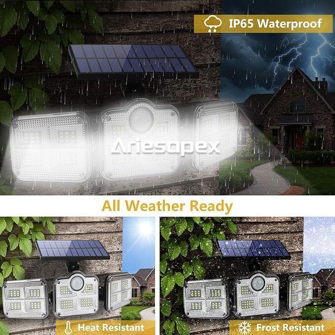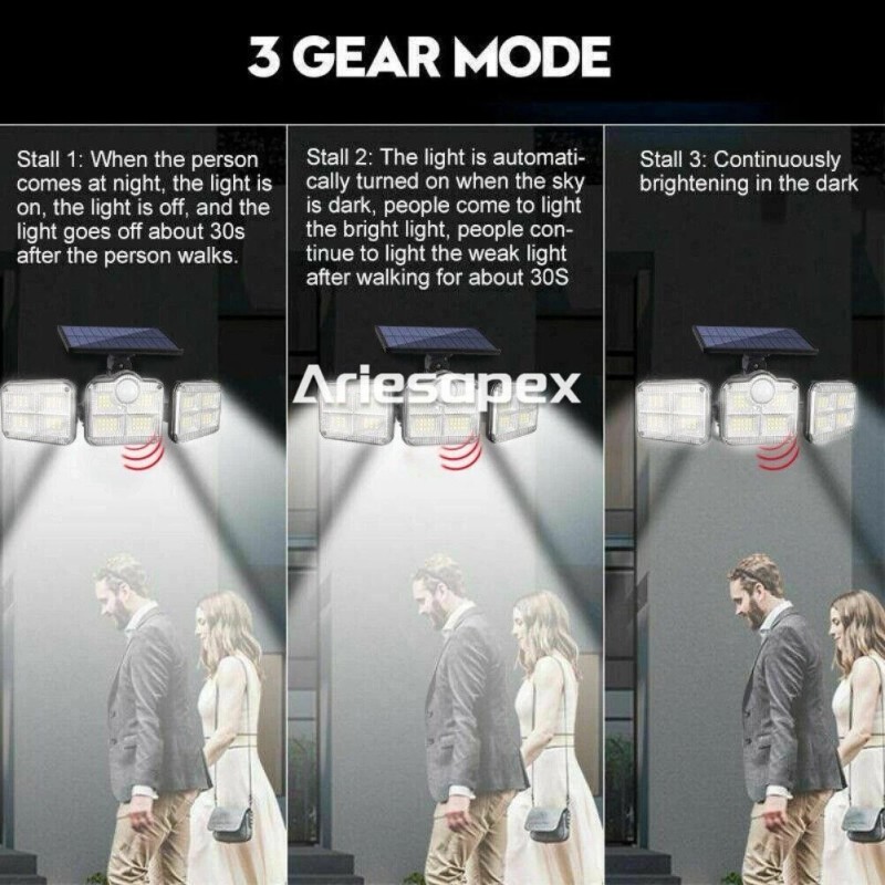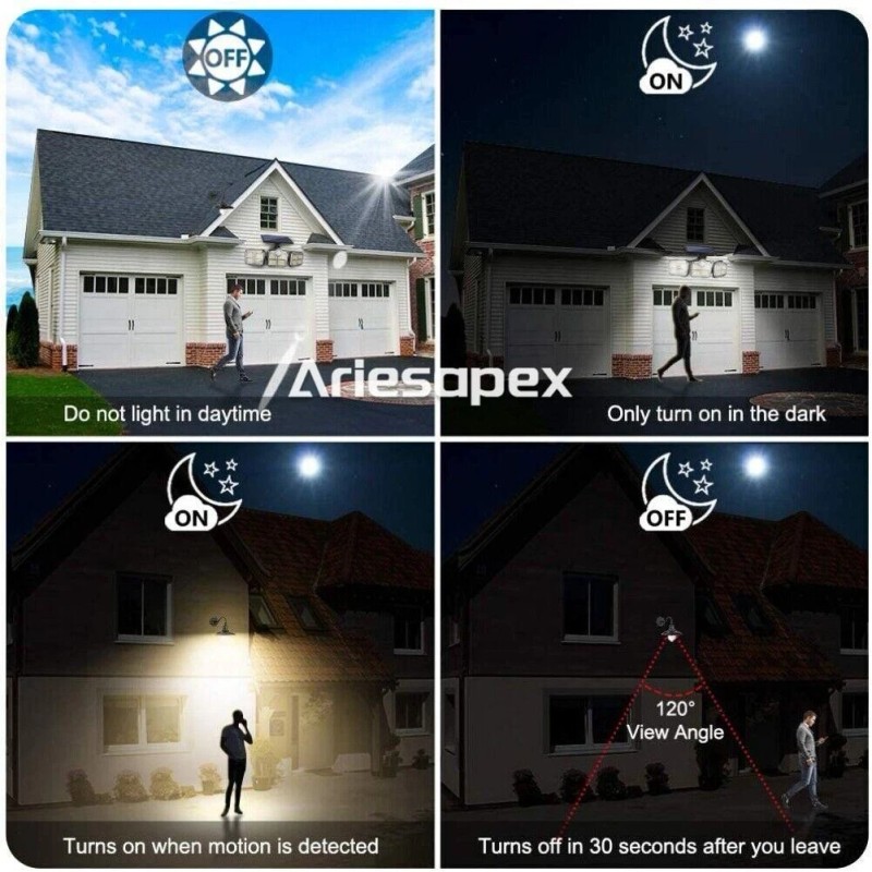 ariesapex 3 Head 50000LM LED Solar Lights Outdoor Waterproof Motion Sensor Security Lamp