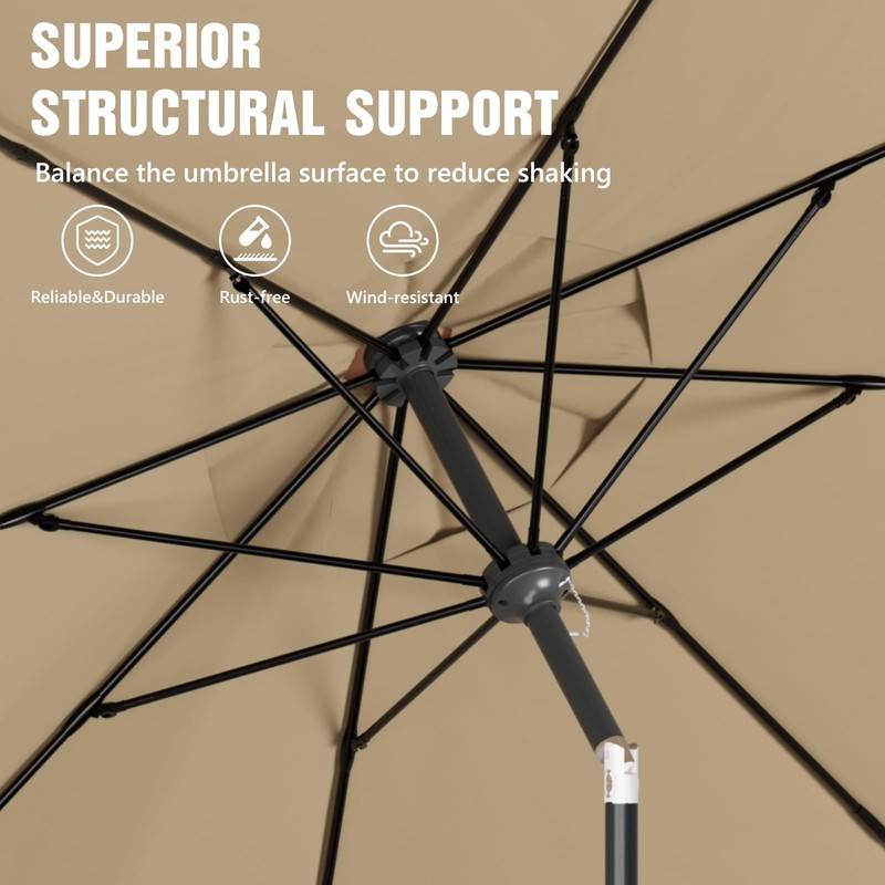- Durable Frame:Built with premium fiberglass ribs, this umbrella boasts excellent wind resistance and flexibility. The robust frame ensures reliable stability and long-lasting use, even in busy outdoor settings.