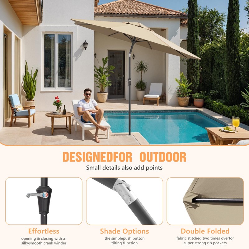 Ariiles 10ft Outdoor Patio Umbrella, Table Umbrellas with Fiberglass Ribs, Push Button Tilt & Crank, Market Umbrella for Backyard & Pool, Beige