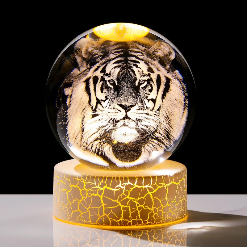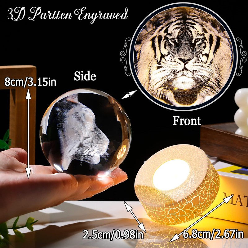 - Tiger Gifts: Diameter of the ball is 8 cm, the ball was equipped with a warm LED light base. This 3D tiger crystal ball is an ideal gift to adjust people's mood and make people calm, calm and comfortable. It is a great choice for your mum, friend, dad, daughter, grandma, daughter, girlfriend, wife, husband or tiger lovers on birthday, Valentines Day, Christmas, anniversary, Teacher's Day, Mother's Day, Father's Day, Anniversary