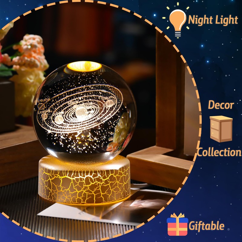 This 3D solar system crystal ball is not only a gift, but also can be a beautiful home decor, you can put it on the table, wall shelf, fireplace. This is a good choice whether it is used as a party decoration or to add warm atmosphere to the family. It can be a warm night light