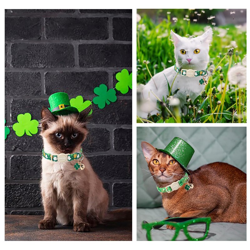 - SAFETY:❤Our St. Patrick's Day cat collar with bells adds extra protection, alerting you to your cat's whereabouts.❤Breakaway buckles design, simply give it a tug, and it swiftly releases, provides more safety for our pets.