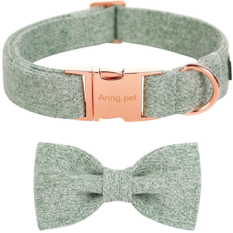 ARING PET Bowtie Dog Collar, Cotton Green Dog Collar with Bow, Comfortable Dog Collars Gifts with Metal Buckle for Small Medium Large Boy and Girl Dogs