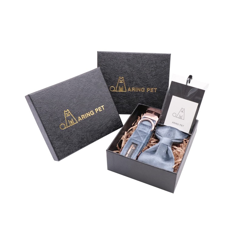 ARING PET Bowtie Dog Collar,Velvet Dog Collars with Detachable Bowtie, Cute &Comfortable Dog Collar, Blue Medium.