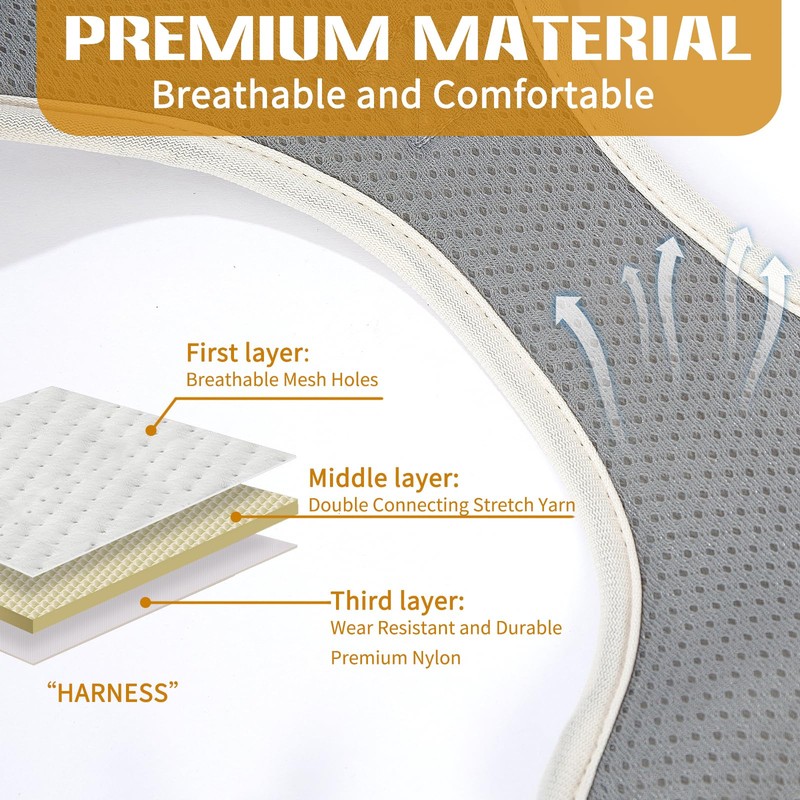 ARING PET dog harness is designed with 4 adjustable webbings, which can be adjusted according to the size of the dog's body to get a perfect fit.  It is very comfortable for the dog to wear and effectively prevents the dog from choking.