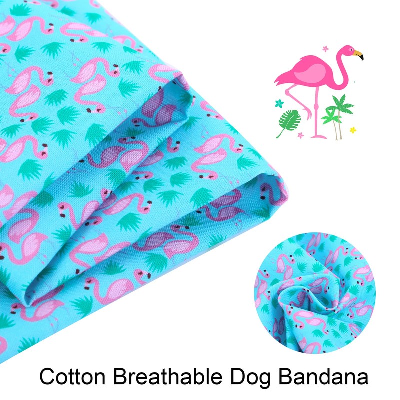 - [ PREMIUM QUALITY MATERIAL ] This is a traditional tie on bandana. The Flamingo dog bandana is made out of cotton fabric. Our dog scarves won’t increase much pressure on the pets and they are convenient to wear and easy to clean.