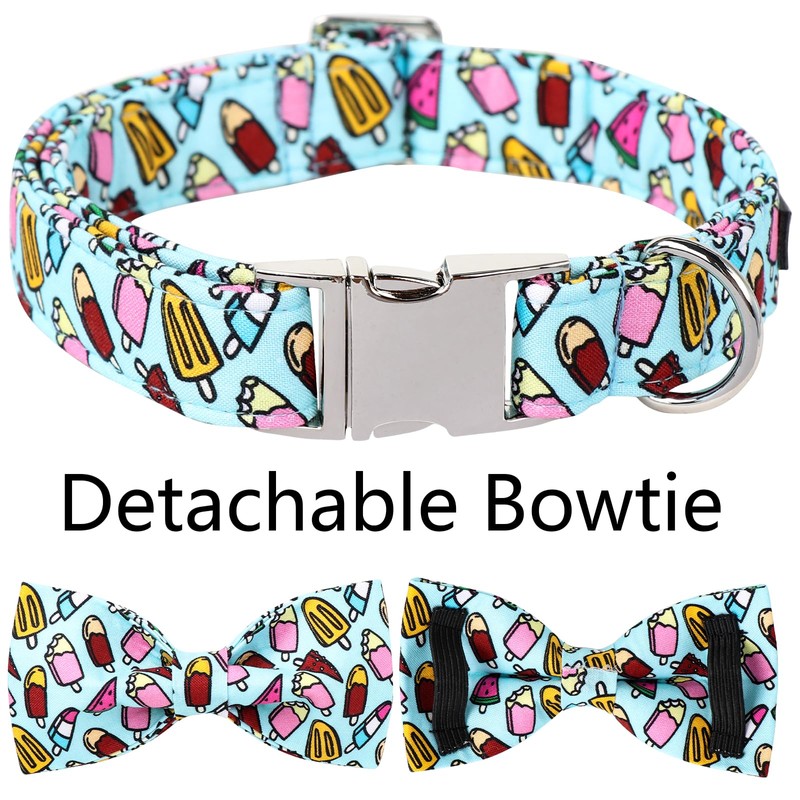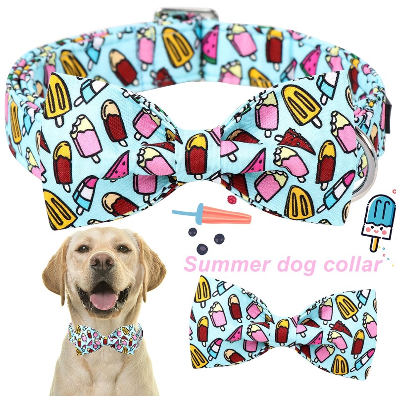 ARING PET Summer Dog Collar-Cotton Ice Cream Dog Collar with bow, Adjustable Popsicle Bowtie Dog Collar Puppy Collars with Metal Buckle for Small Medium Large Dogs