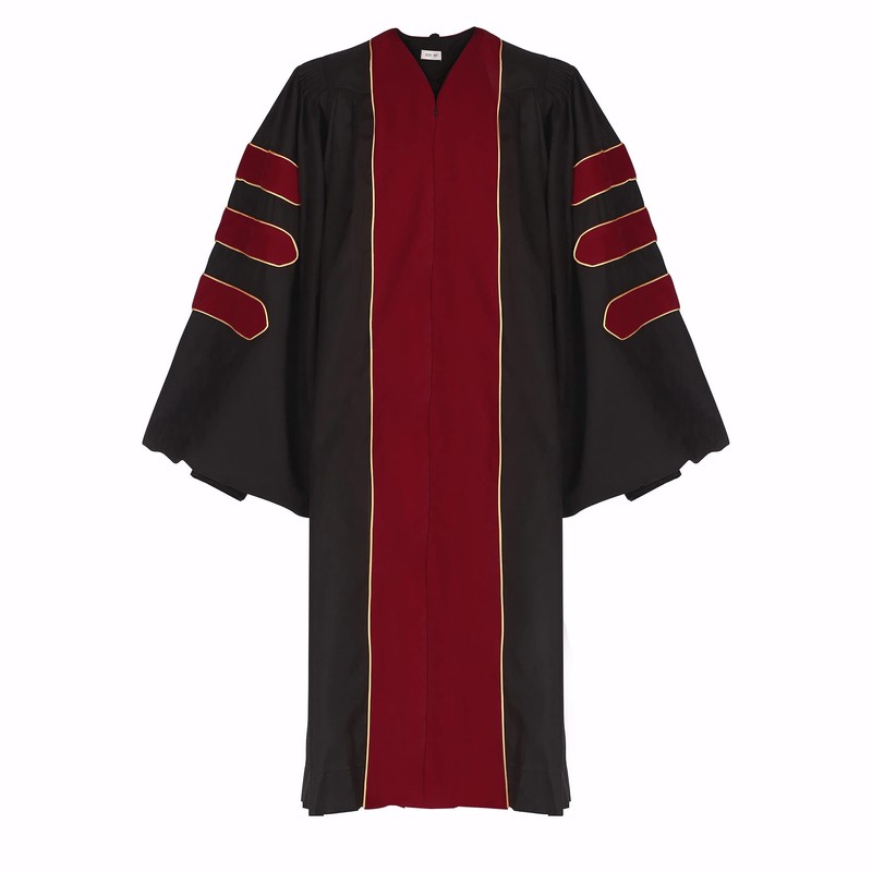 What You Get: 1 x Doctoral Gown + 1 x Doctoral Hood + 1 x 8-Sided Doctoral Tam with Gold Metallic Bullion Tassel.