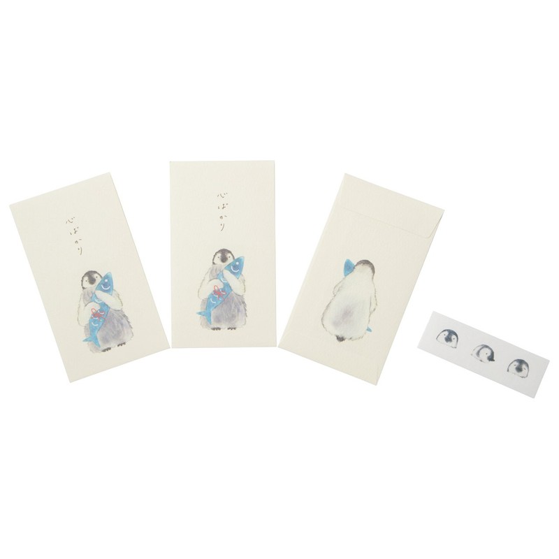 Arisaka Senzando Pochi Pouch, Set of 3, Includes Stickers (Penguin and Fish), Penguin, Small Pouch