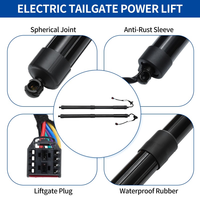 - Features of Rear Tailgate Struts: This Power Liftgate Support made with durable metal material with anti-rust coating for corrosion resistance, anti corrosion sleeve with metal mounting bracket to prevent rust or deform, pre-wired harness to prevent inside wires from rust or break. Built-in electric motor will driving and guide the electric strut to extend or contract.
