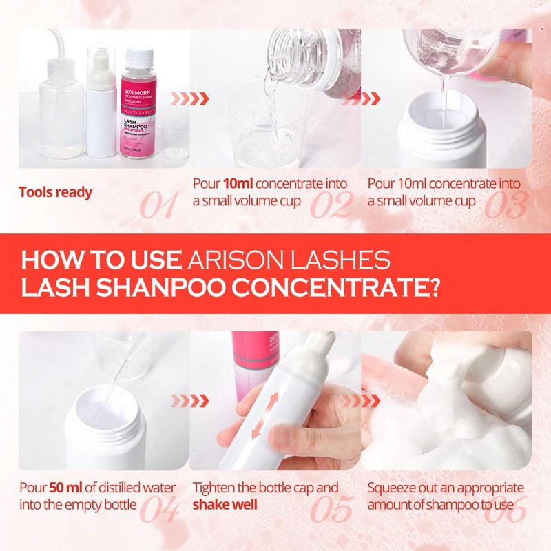 - Natural Ingredient Lash Shampoo: Our lash shampoo concentrate is free from chemicals. The lash shampoo uses upgraded formula so it is gentle and mild. The eyelash shampoo can clean cosmetic residues and dirt, and also can extend the life of eyelashe