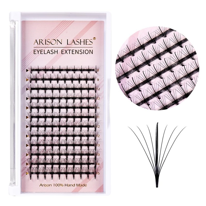 Arison Lashes Premade Lashes Fans False Eyelash Russian Extension Volume Fluff Natural Cat Eye Lashes 7D D Curl 0.07 Thickness 8-15mm Mix Lash Tray