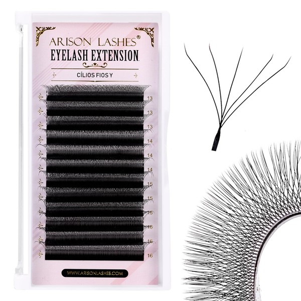 Arison Lashes YY 5D Eyelash Extension y Lashes 0.07mm D Curl Mix Tray 13-16mm Premade Fans Volume Y Shape Faux Mink Matte 12 rows Cluster pre Fanned Soft Eye Lashes