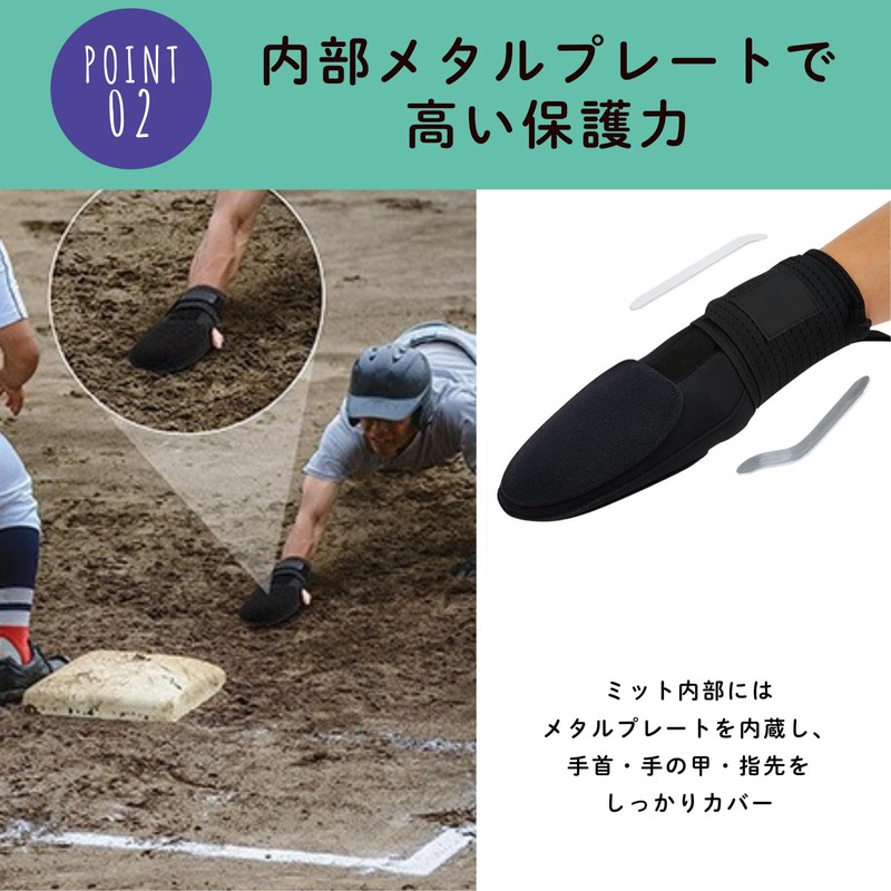 - 【突き指防止で安心プレー】走塁時の突き指・骨折・捻挫などのリスクを軽減する、野球用スライディングミット。手や指をしっかりガードし、安心して全力プレーに集中できる保護アイテムです。