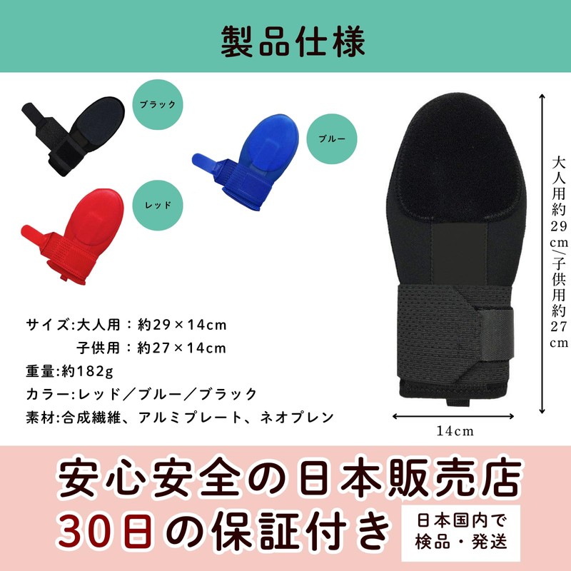 - 【製品仕様】本製品は野球用走塁ミットです。<サイズ>大人用:約29×14cm/子供用:約27×14cm <重量>約182g <カラー>レッド/ブルー/ブラック <素材>合成繊維、アルミプレート、ネオプレン <内容>1個