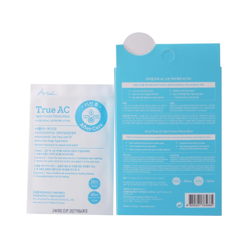 Ariul True AC Spot Cover After Care Patch, invisible patch, Hydrocolloid Acne Pimple Patches for Covering Zits and Blemishes (Niacinamide+Tea Tree Leaf Oil)10mm*60 Counts+12mm*50 Counts, 110 Counts