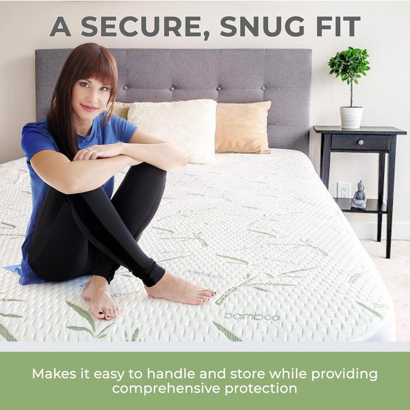 • Fit and Coverage: Measuring 10.5" x 4" x 12", this mattress protector is designed to fit any full-sized bed effortlessly, featuring 18-inch deep pockets that ensure a secure, snug fit. Its dimensions make it easy to handle and store while providing comprehensive protection.