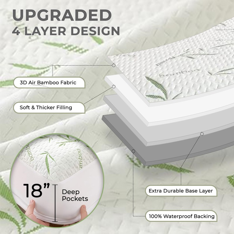 Ariza Sleep Waterproof Full Mattress Protector - Rayon Made from Bamboo Fabri...