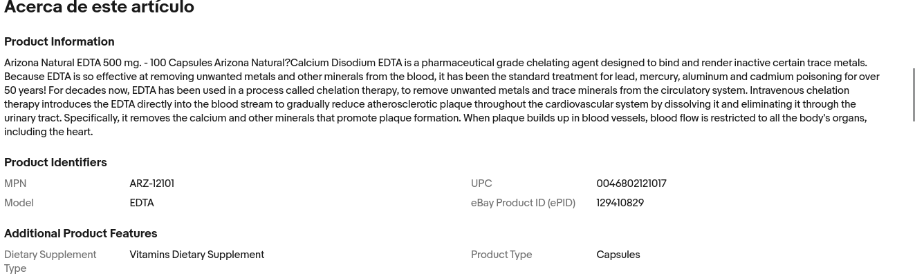 Has estado pidiendo un suplemento de EDTA, ¡y ahora lo tenemos! El EDTA (EDTA disódico de calcio) de Arizona Natural es un agente quelante diseñado para unirse a ciertos oligoelementos. Estamos ofreciendo este producto a las personas que han hecho la investigación sobre EDTA. Asegúrate de hablar con tu proveedor de atención médica antes de usarlo si estás tomando algún medicamento recetado. Calcio disódico EDTA suplemento Agente quelante popular 600 mg por porción