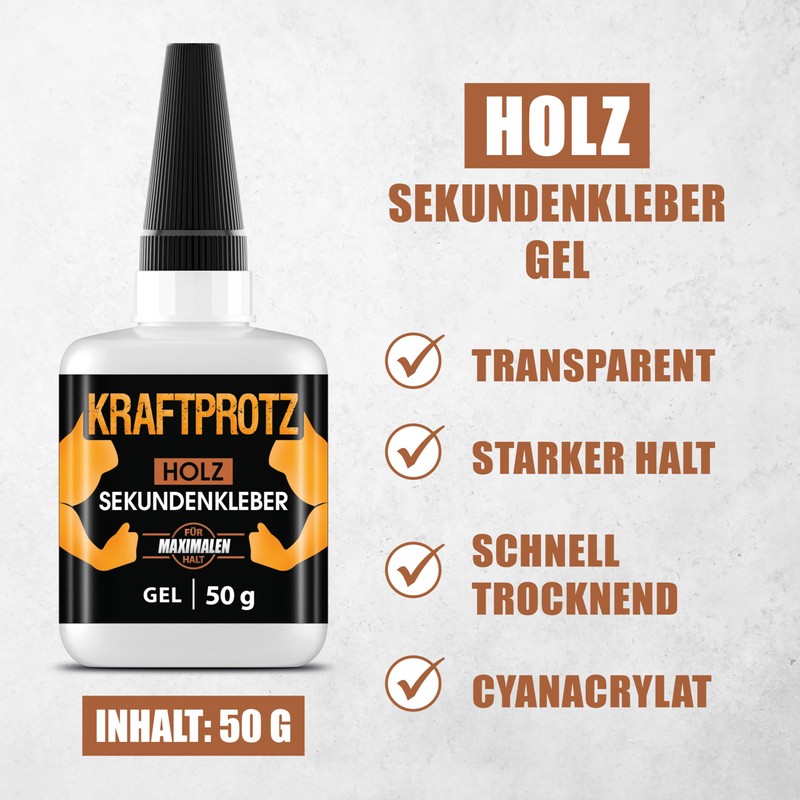 ARKA Krafprotz Holz ist ein universell verwendbarer extra starker Sekundenkleber mit einer dickflssigen Konsistenz. Er eignet sich ideal zum Verkleben von Holz und Holzwerkstoffen. Seine Anwendung ist benutzerfreundlich und er sorgt fr eine nachhaltig sichere und kraftvolle Verklebung der zu verklebenden H?lzer.