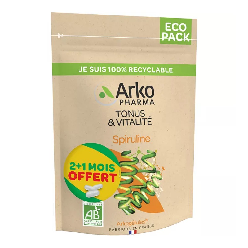 Arkopharma Spirulina Bio Arkogélules capsules come in a box of 150 vegetarian capsules or 45 vegetarian capsules, 270 vegetarian capsules or a box containing 150 vegetarian capsules + 45 vegetarian capsules.