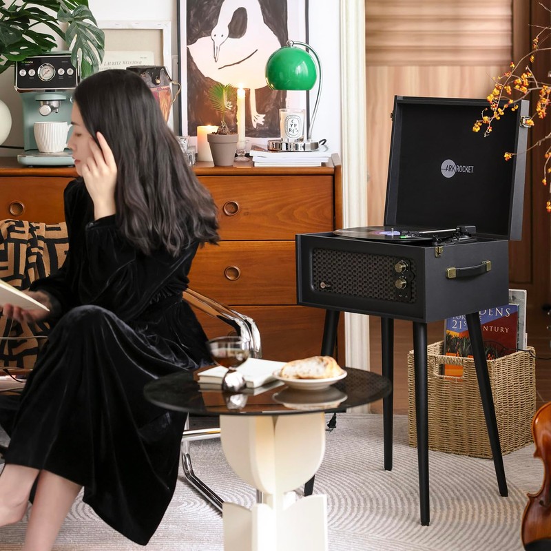 Arkrocket Discovery 3-Speed Bluetooth Record Player Retro Turntable with Built-in Speaker and Removable Legs