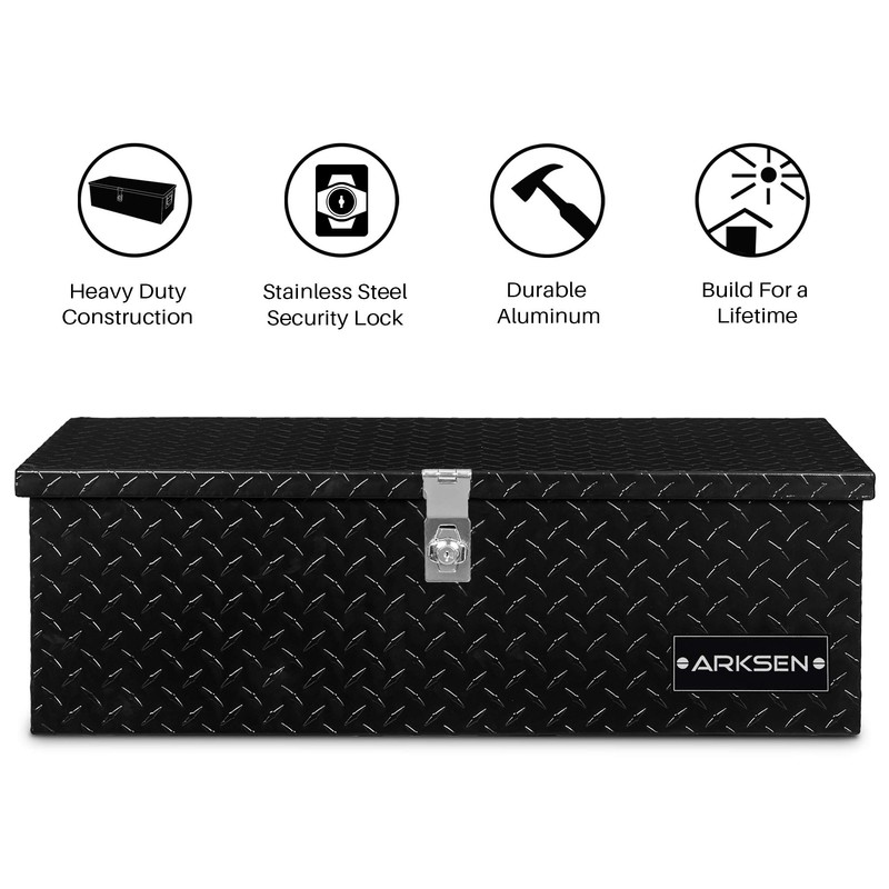 ARKSEN 30 Inch Heavy Duty Aluminum Diamond Plate Tool Box Chest Box Pick Up Truck Bed RV Trailer Toolbox Storage Lockable Organizer with Side Handle and Lock Keys – Black