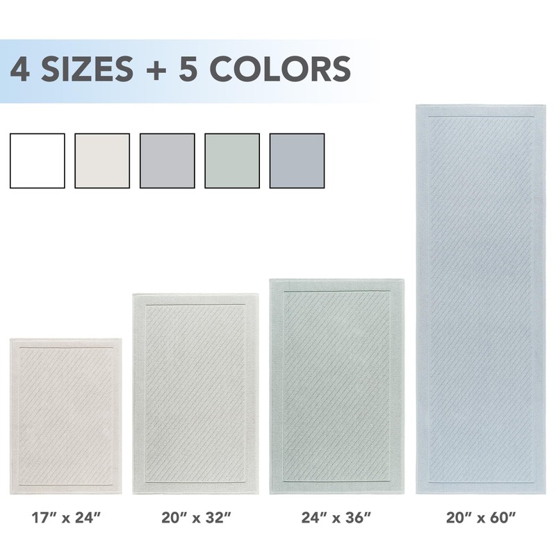 - VERSATILE RUGS & MATS: The modern woven cotton bath rug line has multiple sizes to outfit any size bath space! Choose a 2-piece set for larger bathrooms, which includes 17x24 in. and 20x32 in. bath rugs. For spas and large bathrooms, pick up two sets or a larger floor rug and create a welcoming larger space. There is also a runner, size 20x60 in. Rental property and Airbnb owners can mix and match colors or buy by the case to create a cohesive color theme throughout their spaces.
