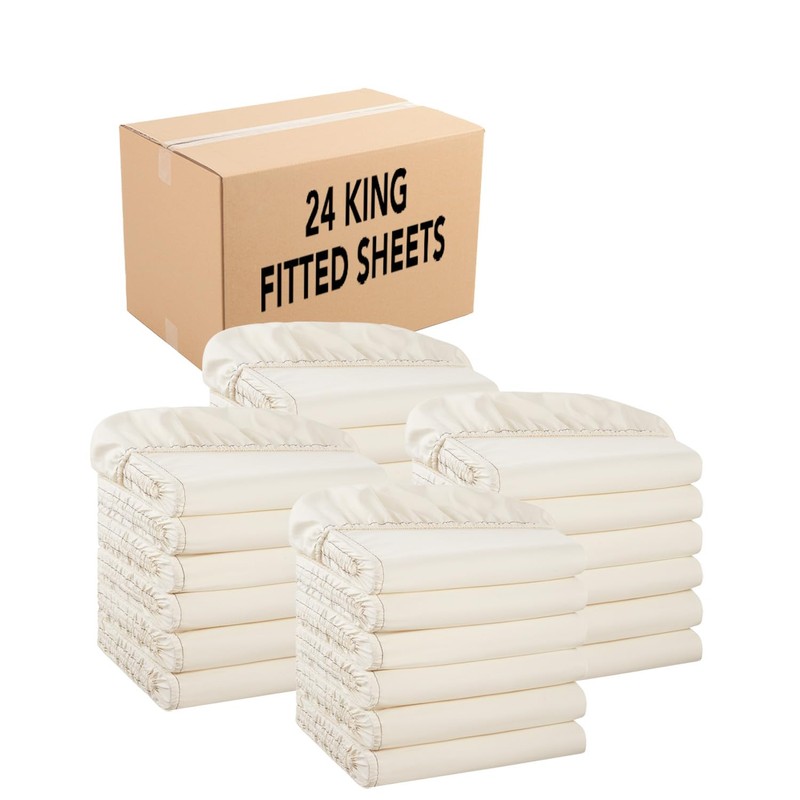 Arkwright Bulk King Fitted Sheets - Case of 24 - Soft Brushed Microfiber Hypoallergenic Bottom Sheet Only with Deep Pocket, Bedding Essentials for Hosts and Hotels, Ivory