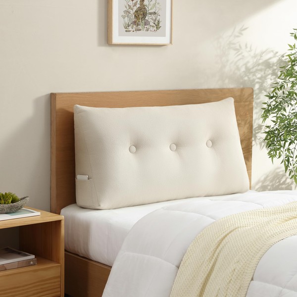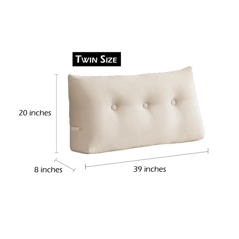 Arlee Ergonomic Triangular Headboard Wedge Backrest Pillow, Supportive Foam Filled Design for Neck & Back, Removable Cover, Side Pockets, Ideal for Reading, Lounging, Home Decor, Beige, Twin, 59x8x20