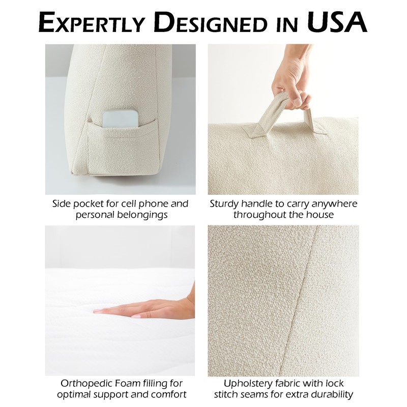 - 💪SUPPORTIVE FILLING THAT HOLDS ITS SHAPE: Filled with premium, dense orthopedic foam, this wedge headboard pillow maintains its shape and firmness through regular use. Whether you’re sitting upright or reclining, by yourself or sharing it with others, the cushion adapts to your positioning for consistent support across your upper body without flattening or sagging over-time or sliding all over when you are using it.