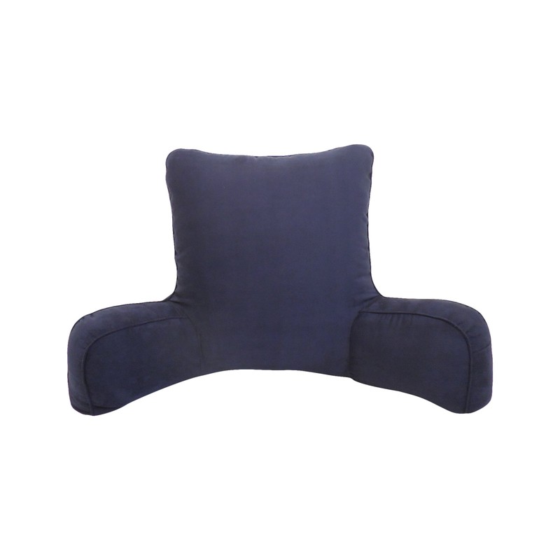 This Suede Oversized Bed rest Lounger, Eclipse, is 36" by 19" by 24" in size. Finally a back rest that is tall enough and wide enough for adults. Extra tall back gives support for back AND head. Wide body and wider arms make this back rest comfortable for adults of all sizes. Perfect for reading in bed, comforting mild back pain, nursing or resting on the floor. Has an easy to grasp handle to help carry from room to room. Spot clean only. Cover: 100% Polyester. Filled with a blend of virgin polyester fibers and fibers made from repurposed plastic bottles for ideal support, comfort and the assurance that you helped keep the earth a little cleaner. Made in China, filled and finished in USA.