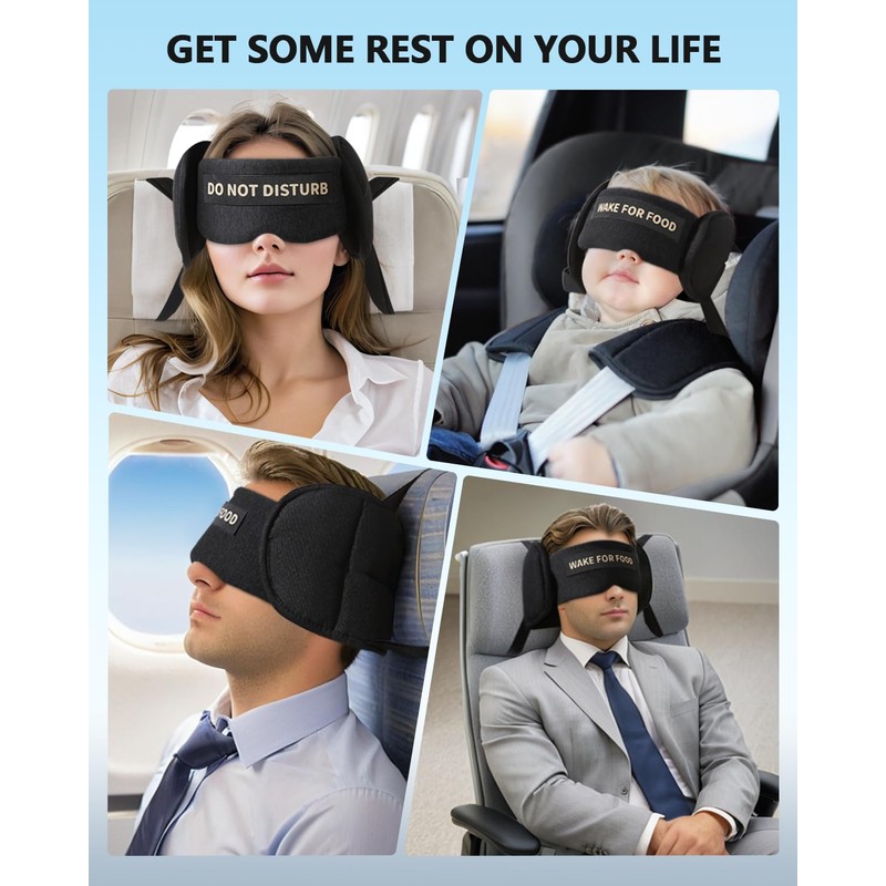 - EYE MASK & VELCRO TAGS: Sleep eye mask, when used with the headrest pillow, is ideal for use in scenarios such as airplanes, cars, and office, providing proper support and a comfortable sleeping posture. With the 'WAKE FOR FOOD' and 'DO NOT DISTURB' Velcro tags, you can communicate your preferences to the flight attendants without disturbing other passengers. The eye mask can also be used independently for midday naps, nighttime rest, meditation, and more