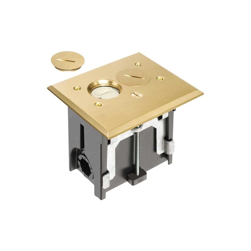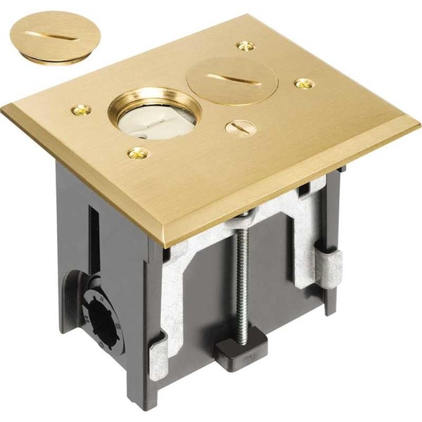 Arlington FLBA101MB-1 Adjustable Rectangular Floor Outlet Electrical Box Kit with Brass Metal Cover, Fits up to 2-Inch Floors, 1-Pack
