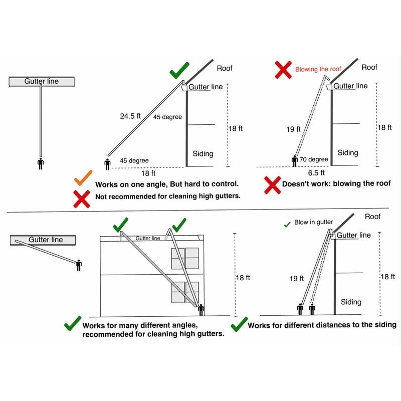 - Lightweight and easy to control gutter cleaning tool – attach the flat air tubing and nozzle to any US standard threaded extension pole.
